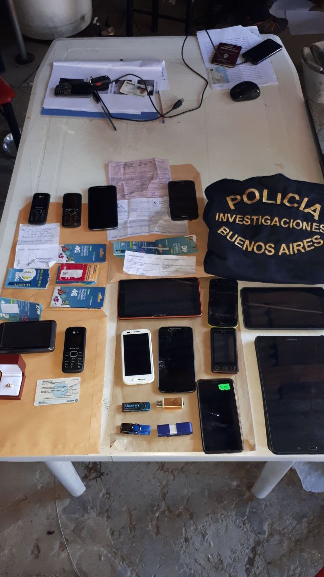 En los 4 objetivos requisados en el GBA por los Policías de la DDI local cumpliendo órdenes emanadas por SS Juez Garantías Dr. Gerardo Palacios Córdoba – Trenque Lauquen, con apoyo debido a la complejidad de la zona a desplegar el dispositivo del Grupo Halcon, Policía Comunal Pehuajó, Grupo GAD, juntamente Policía Provincia de Chubut, quienes cumplimentaban Exhorto en jurisdicción Bonaerense ya que los pares Chubutenses venían llevando investigación por delitos sufridos en la Provincia del el Sur Argentino bajo misma modalidad delictiva.